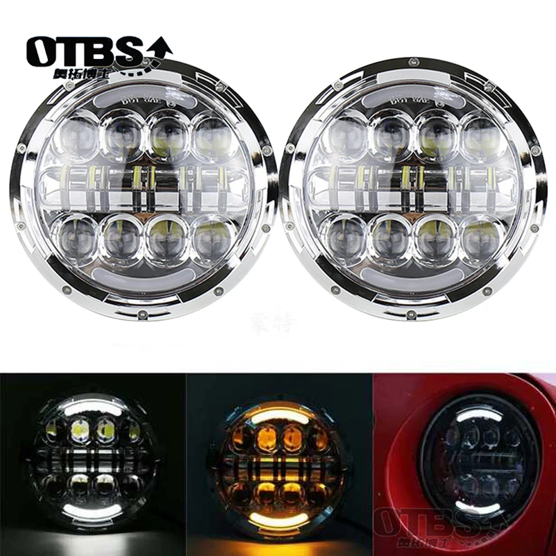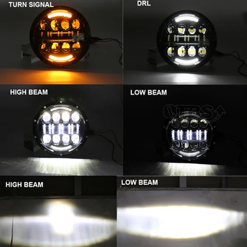 HIGH QUALITY OTBS 7" Round 80W Hi&Lo Beam LED Headlight DRL Headlamp for Jeep Wrangler JK TJ CJ Patrol GR Y60 Hu